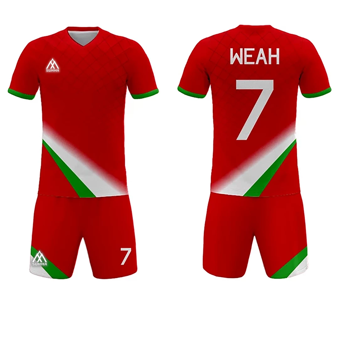 Summa Drive Men’s Soccer Stripe Jersey Dry Fit Red/White With Green FOOTBALL