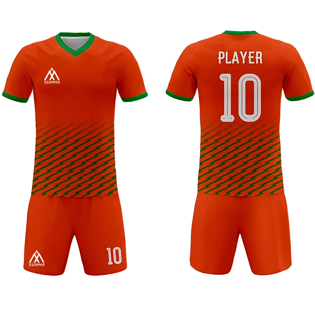 Summa Drive Men’s Soccer Uniforms Set Full Sublimation Red Orange/Green FOOTBALL