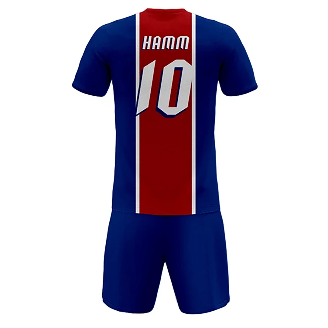 - Summa Drive Men’s Sublimation Football Jersey Set Blue with White and Red is made of beautiful and smooth 100% polyester material. It is very comfortable and breathable.