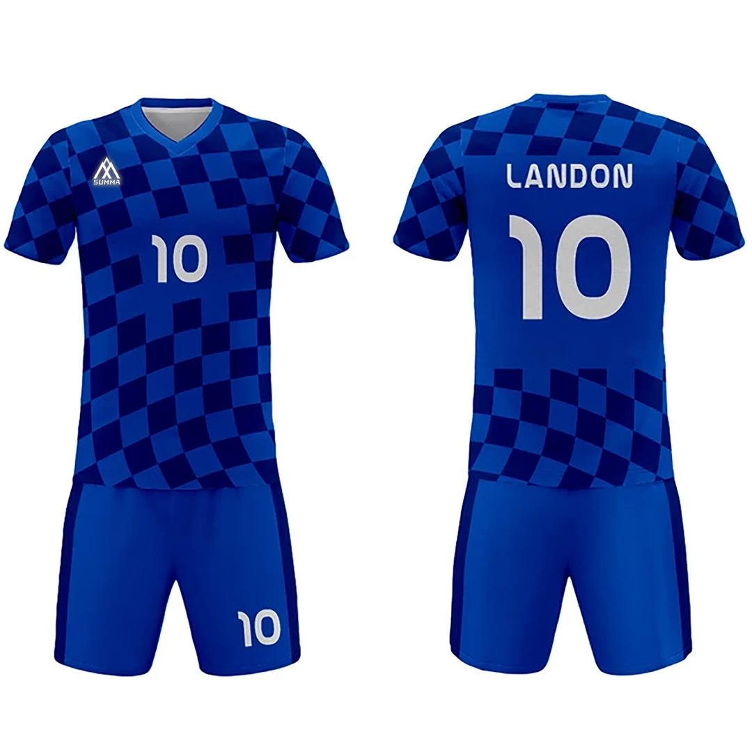 - Summa Drive Men’s Sublimation Football Jersey Set Checkered Blue is made of beautiful and smooth 100% polyester material. It is very comfortable and breathable.
