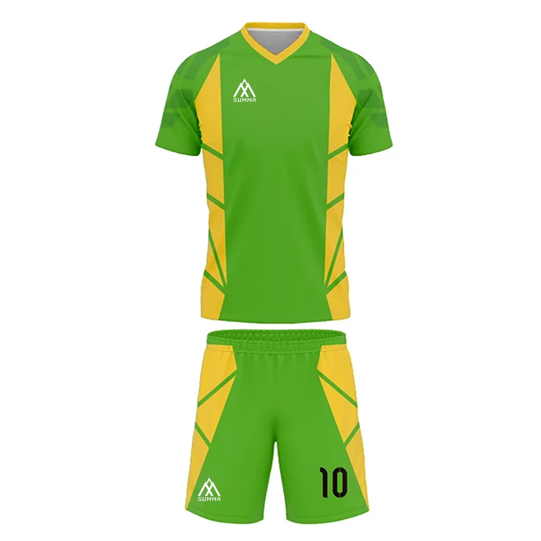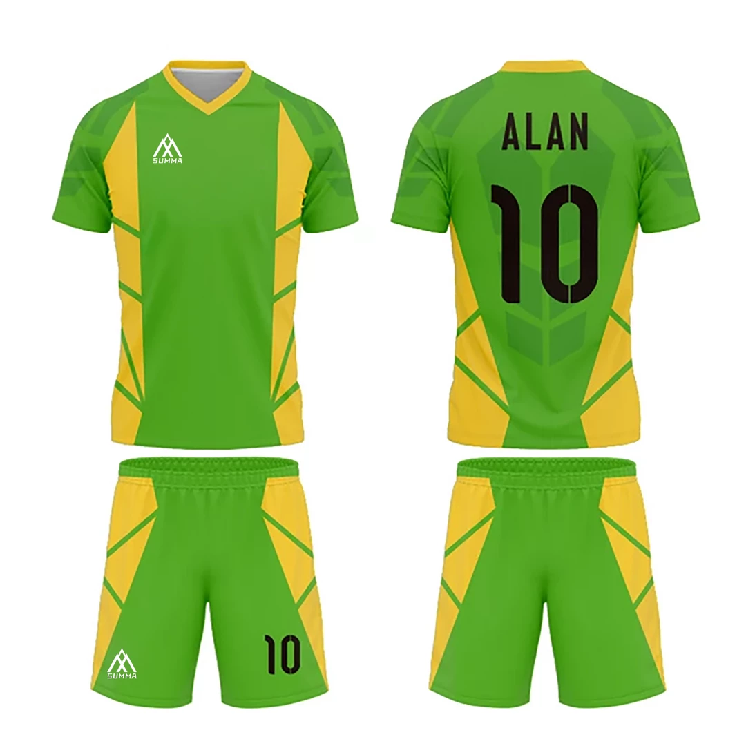 - Summa Drive Polyester Soccer Kit Green/Yellow Orange is made of beautiful and smooth 100% polyester material. It is very comfortable and breathable.