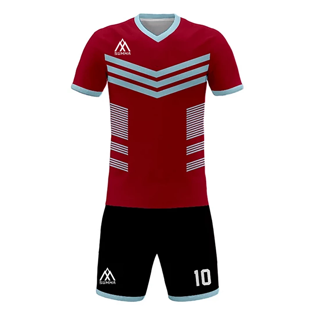 - Summa Drive Quality V Collar Sublimation Soccer Jersey Red/Light Blue With Black And White is made of beautiful and smooth 100% polyester material. It is very comfortable and breathable.