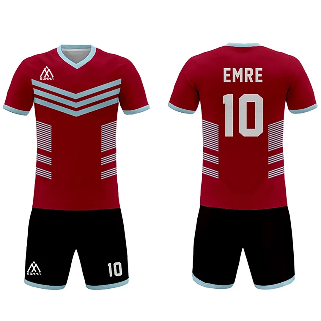 Be the first to review “Summa Drive Quality V Collar Sublimation Soccer Jersey Red/Light Blue With Black And White FOOTBALL” Cancel reply