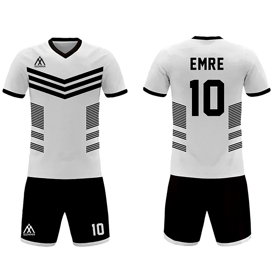 - Summa Drive Quality V Collar Sublimation Soccer Jersey White/Black is made of beautiful and smooth 100% polyester material. It is very comfortable and breathable.