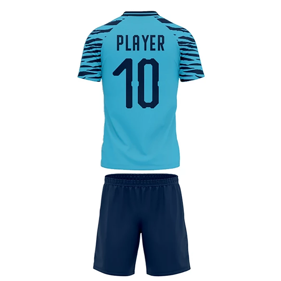 Summa Drive Quick-Dry Polyester Sublimation Football Uniform Light Blue With Blue Shorts Zebra Design Pattern